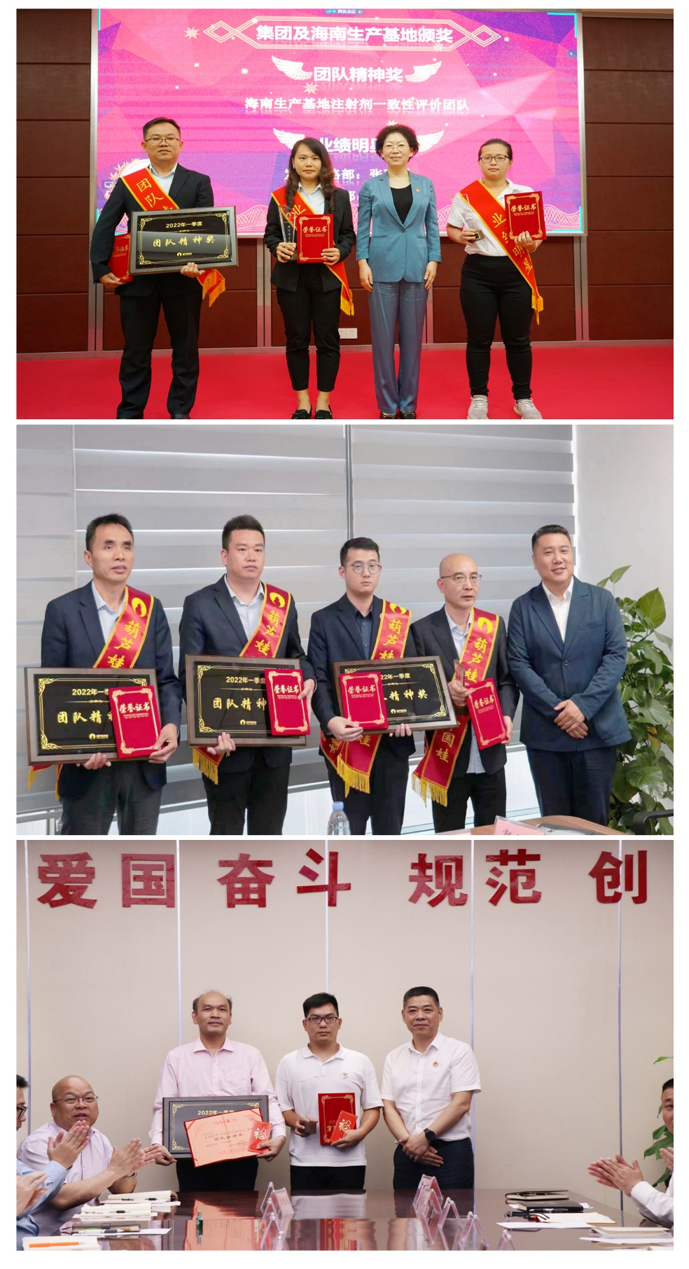 为了表彰在2022年一季度“深化变革,赢得开门红”工作中“超额完成计划、超出本职工作或超越组织预期”的先进集体和优秀个人,会议期间还举行了PG国际药业集团2022年一季度“开门红”表彰颁奖仪式。营销中心葫芦世家事业部湖南区域主管黄子杰等12人荣获业绩明星奖,葫芦世家事业部等5个集体荣获团队精神奖。
