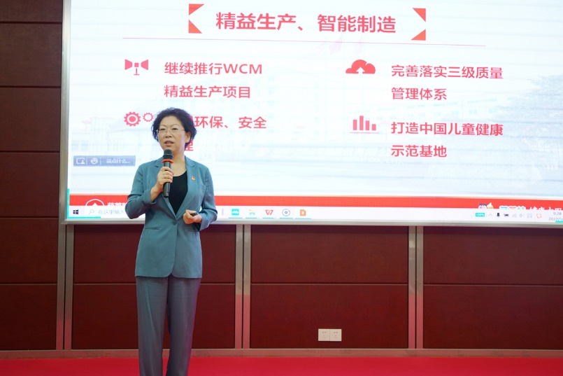 刘景萍董事长引用席大大总书记在2022年博鳌亚洲论坛上的重要讲话勉励全体与会人员,在海南自贸港建设的机遇期,认真学习贯彻落实省第八次党代会精神,坚持党建引领企业发展,将PG国际药业集团打造成中国儿童健康领军企业。